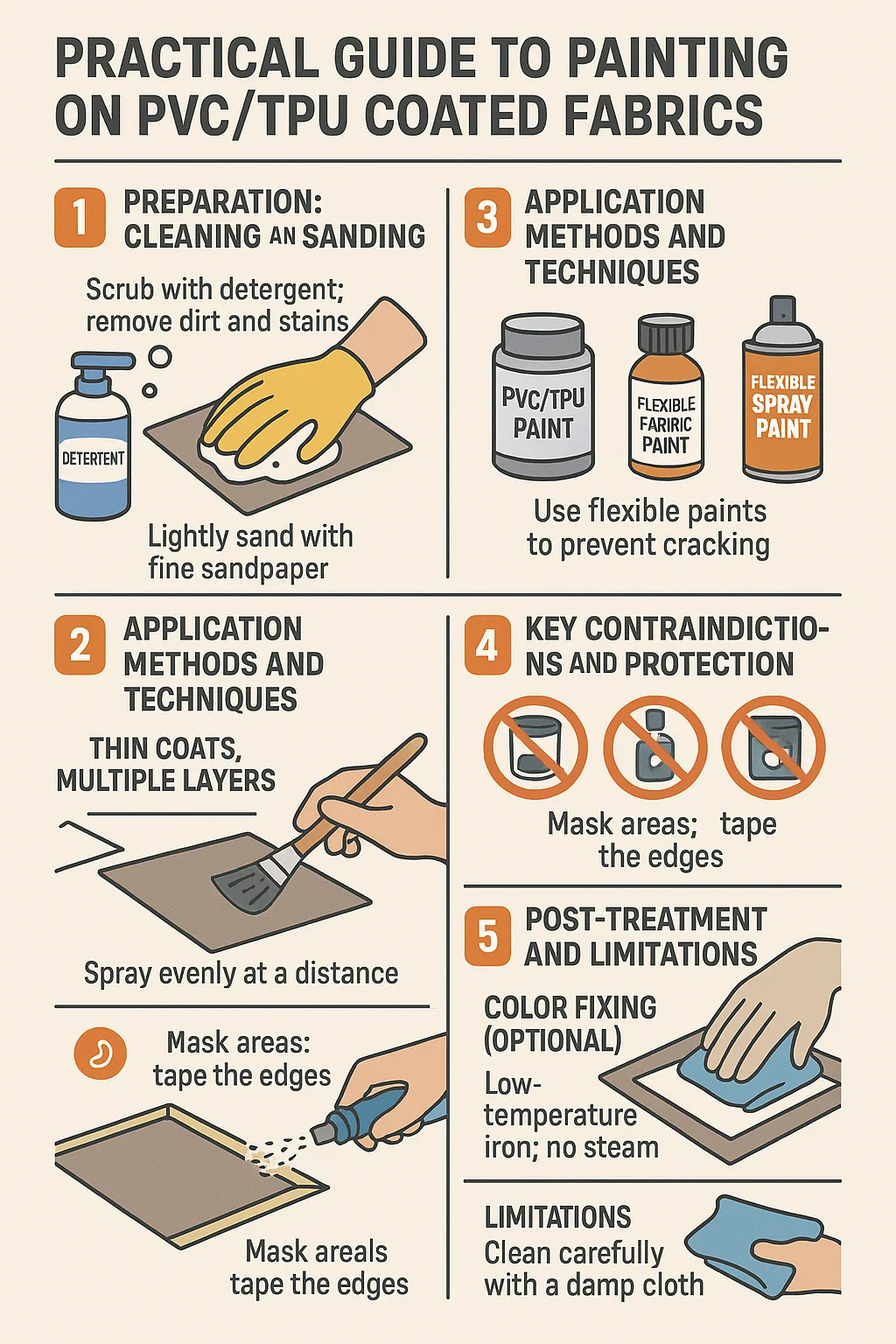 Aquí tienes una guía práctica para pintar sobre Tejidos recubiertos de PVC y telas recubiertas de TPU, incorporando experiencias operativas y precauciones comunes: