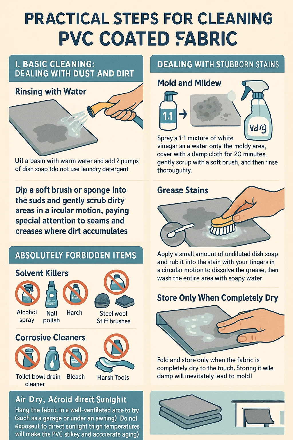 Aquí tienes pasos prácticos para la limpieza. tejido recubierto de PVC :