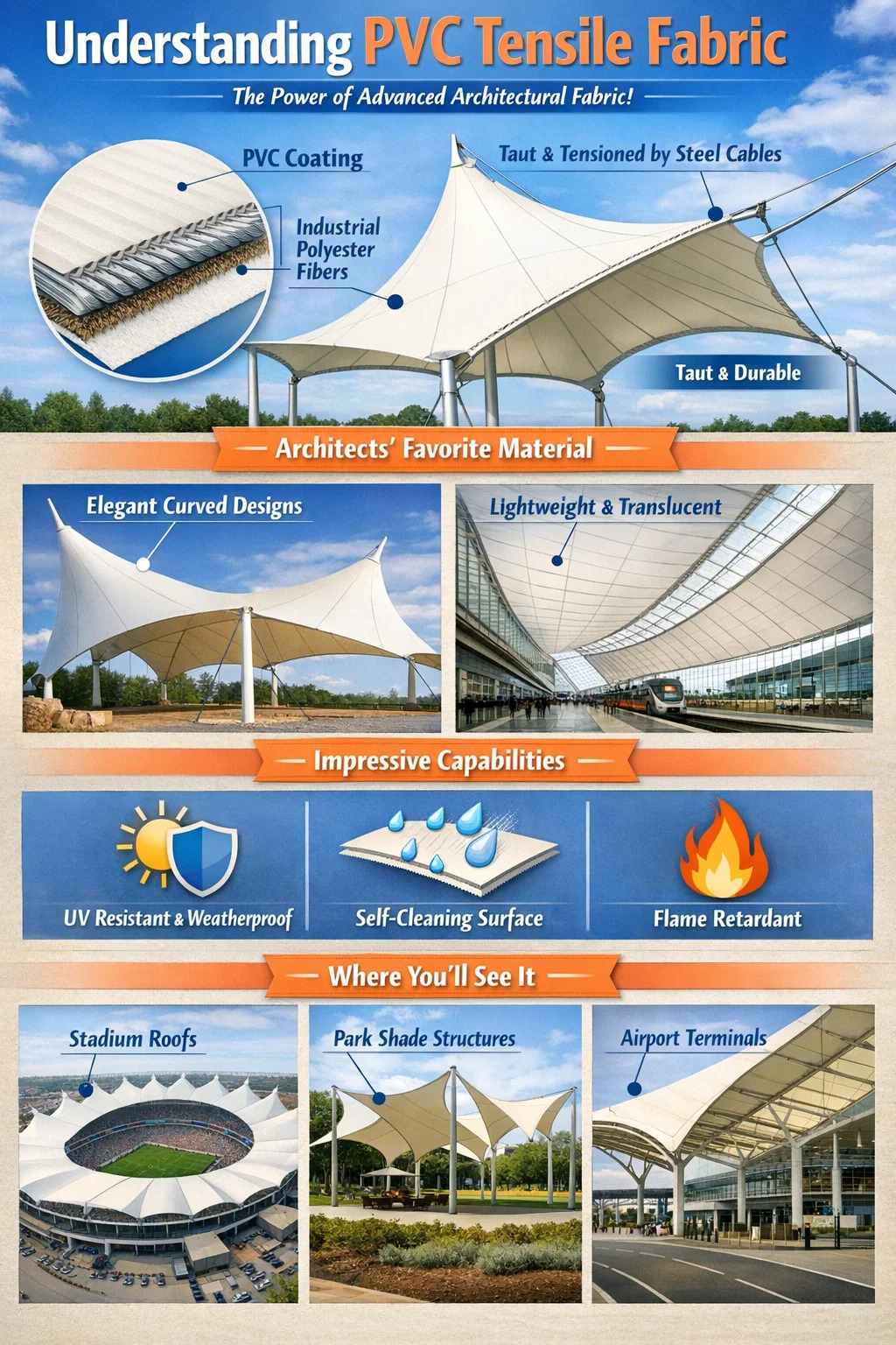 Formas versátiles: se puede estirar en forma de silla de montar, forma de tienda de campaña o varias curvas elegantes. A menudo verás estas formas artísticas en estadios, teatros al aire libre o estructuras de estacionamiento de alta gama.